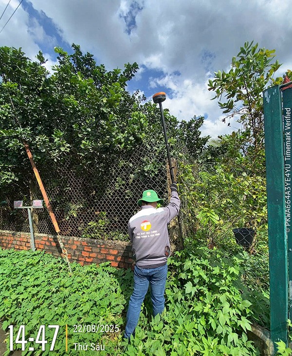 Kỹ sư trắc địa đến tận nơi để kiểm tra mốc giới, địa hình và xác định phạm vi đo.